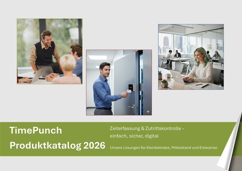 Zeiterfassung & Zutrittskontrolle TimePuncheinfach, sicher, digitalProduktkatalog 2026Unsere Lösungen für Kleinbetriebe, Mittelstand und EnterpriseSeite 1
